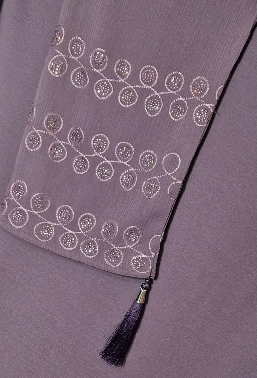 Beautiful Leeza abaya, with sequences details around the neck and sleeves. Softly refined and effortlessly elegant, crafted for comfort and timeless style. Colour may vary slightly.