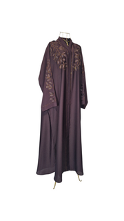 Classic open buttoned abaya with modern golden 3D work and embroidery with a matching belt.
